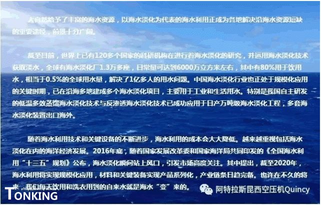我們生活著的美麗地球其中71%的面積是被海洋覆蓋著的,大自然給予了地球豐富的海水資源。海水利用中以海水淡化為代表的利用技術(shù),正成為世界各地解決沿海水資源短缺的重要途徑,此項(xiàng)技術(shù)前景十分廣闊。